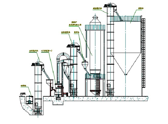 1. 破碎機(jī)將大尺寸的石膏礦石破碎成小于25mm的小塊顆粒,經(jīng)過儲(chǔ)存及輸送進(jìn)入磨機(jī)進(jìn)行粉磨,經(jīng)選粉機(jī)將粉磨后達(dá)到產(chǎn)品所需細(xì)度的石膏生粉送入沸騰爐進(jìn)行煅燒,其余部分返回磨機(jī)進(jìn)行再次粉磨直至合格。煅燒后的合格石膏粉送入熟料倉(cāng)儲(chǔ)存或送入制品車間使用。